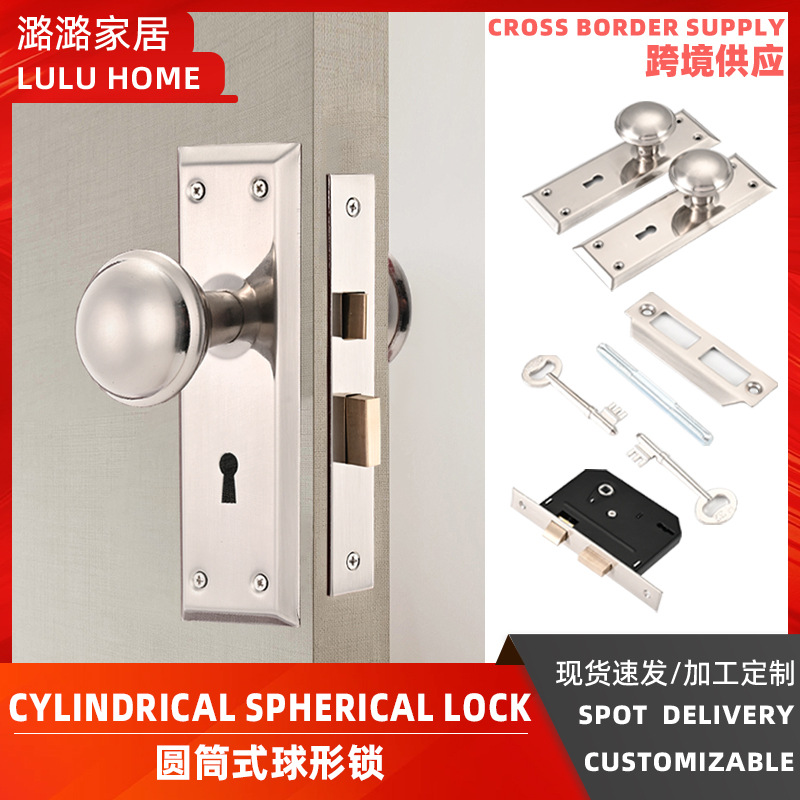 Pasokan langsung pabrik, kunci pintu paduan seng kustom lintas batas, kunci pintu ganda baja tahan karat, gagang kunci bola silinder, tersedia dalam stok