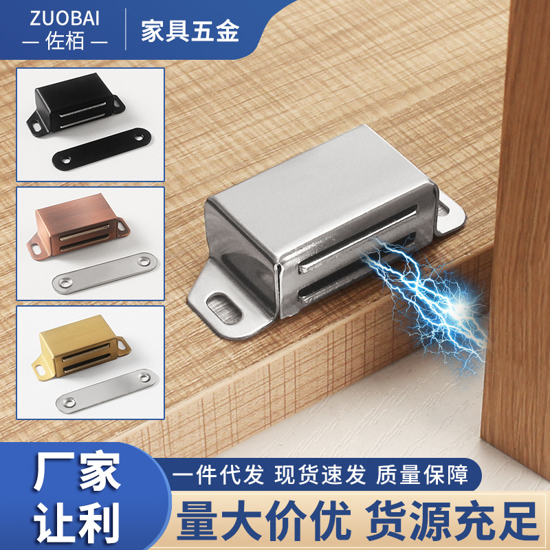Pintu hisap pintu lemari pakaian magnetik hitam, Kabinet penghisap magnet stainless steel kuat, kunci manik-manik sentuh, aksesori pintu kabinet