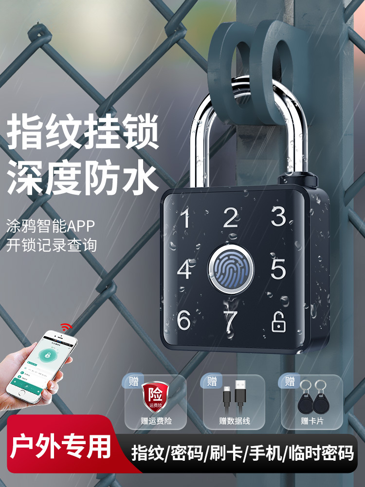 Gembok sidik jari pintar, kunci kecil sidik jari pelajar sidik jari, sumber pabrik langsung rumah tangga tahan air TUYA grafiti Bluetooth