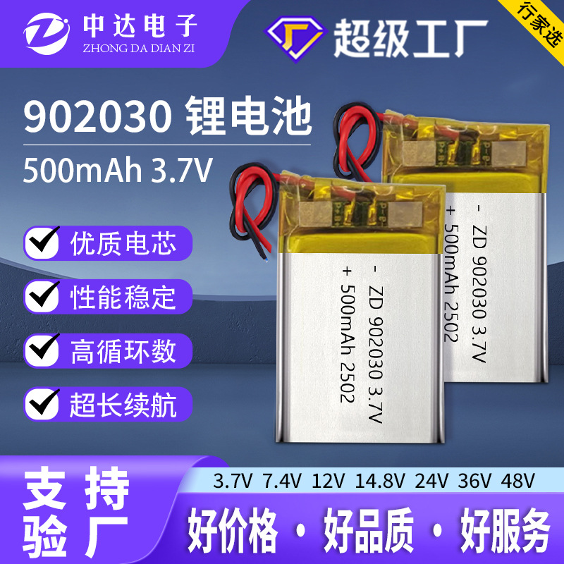 Baterai lithium polimer 902030 500mAh pelembap instrumen kecantikan 3.7V baterai isi ulang kobalt murni kustom