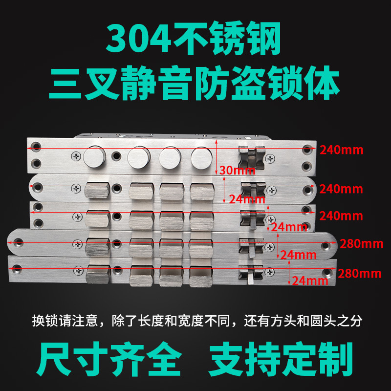 Gu le 304 semua baja anti-maling kunci pintu tubuh 6860 tiga steker lidah persegi cepat ganda silinder 240*24 atau 30 silinder