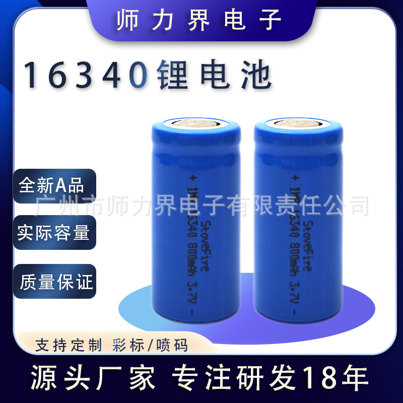 Stovefre16340 baterai lithium 3.7V, baterai kapasitas besar 800mAh laser pointer CR123A baterai isi ulang