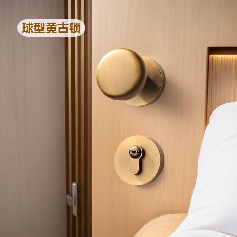 BAGB kunci pintu pegangan rumah tangga, magnetik senyap kamar tidur kunci terpisah gaya Perancis Amerika cahaya mewah kunci pintu kayu perunggu kuning