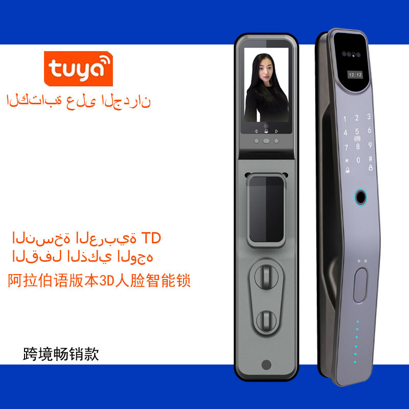 Kunci pintar grafiti lintas batas Arab dengan pengenalan wajah 3D, kunci pintar otomatis penuh dengan sidik jari dan kata sandi untuk pintu masuk
