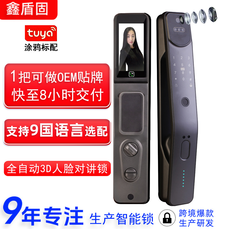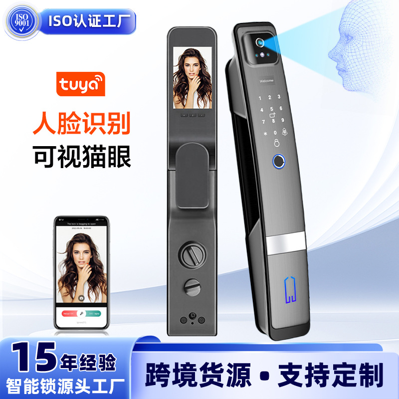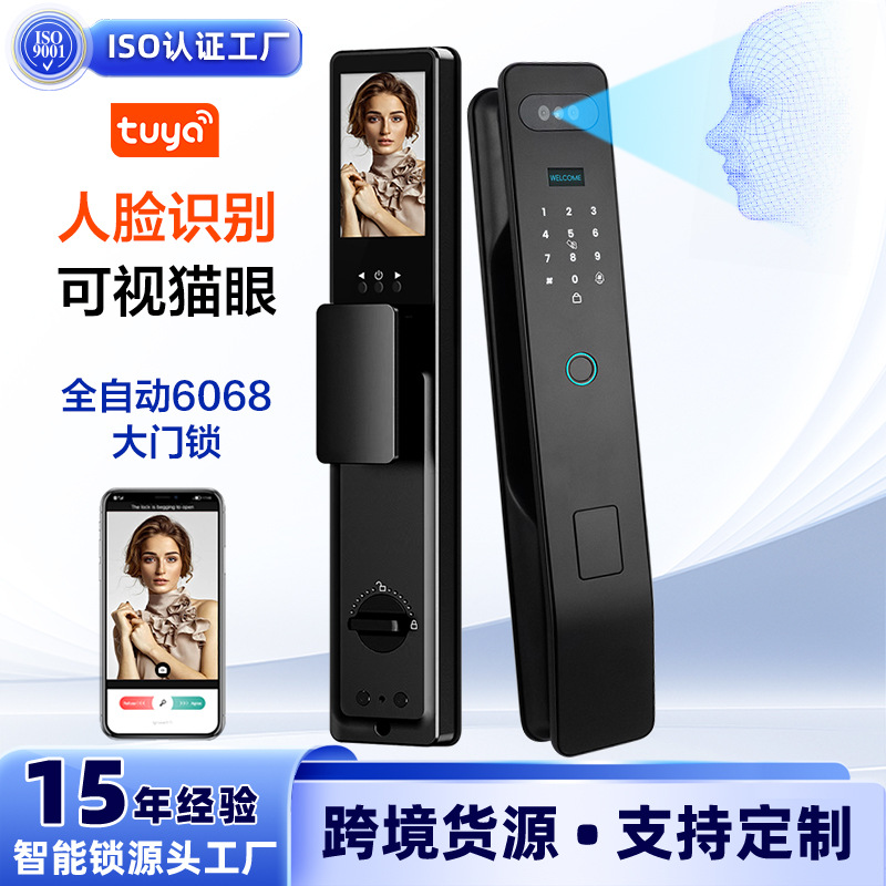 Kunci pintu 6068 otomatis anti-maling/grafiti luar negeri + Mata Kucing + kunci pintar pengenalan wajah