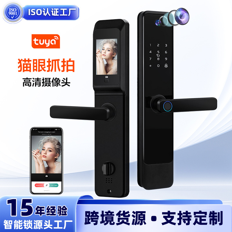 Kunci Pintu anti Maling otomatis 6068, kunci pintar baru grafiti wifi visual mata kucing