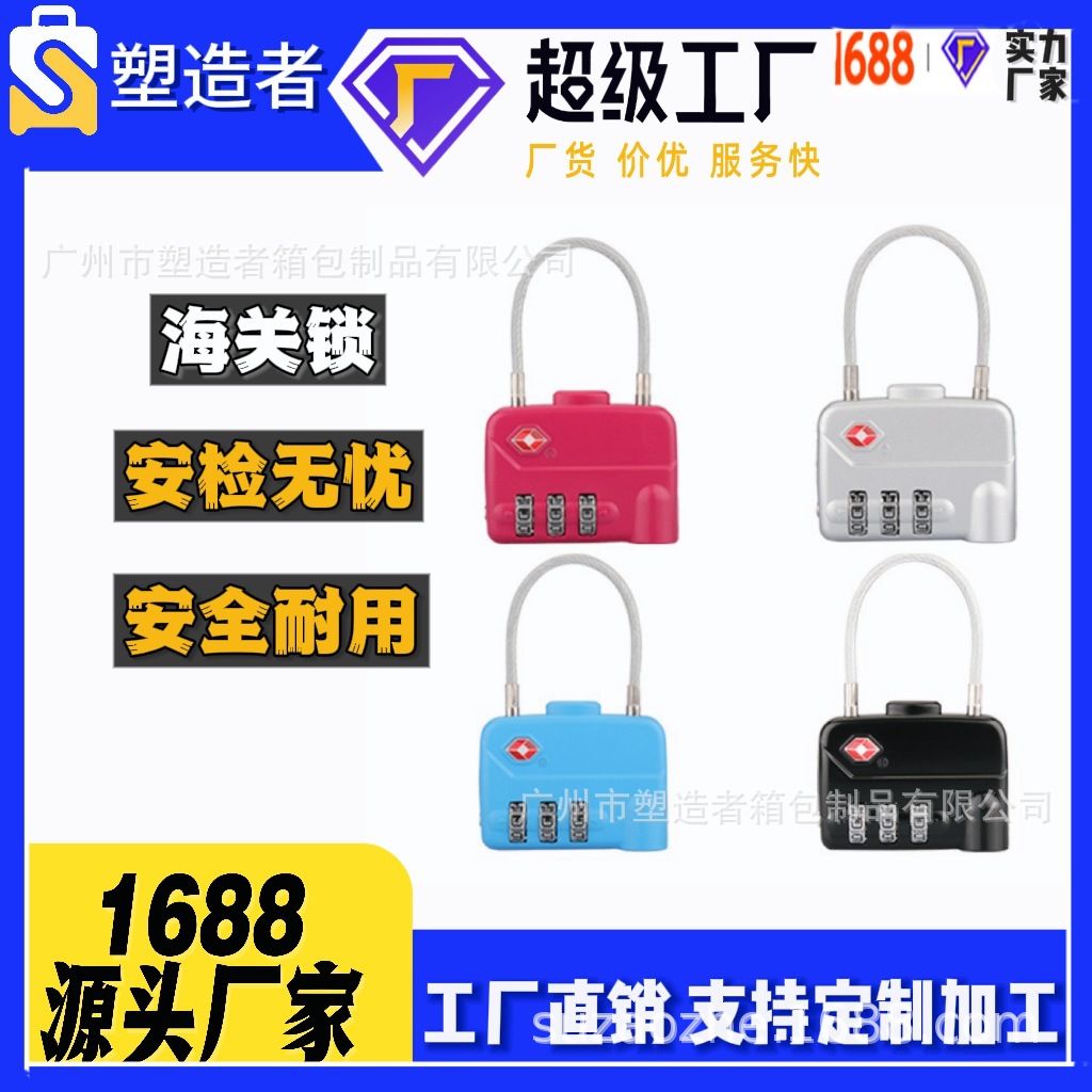 Produsen dalam stok tiga digit tali kawat kunci kata sandi koper bagasi TSA320 Bea Cukai kunci tali kawat gembok