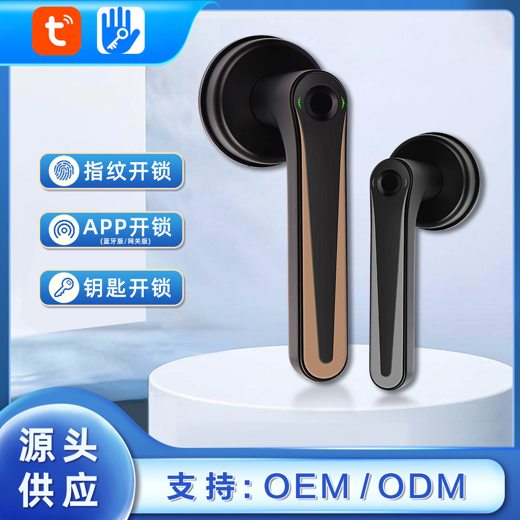 TUYA Tongtong kunci pegangan pintar, buka kunci pintu kayu dalam ruangan anti Maling kunci sidik jari kata sandi elektronik dengan satu pegangan