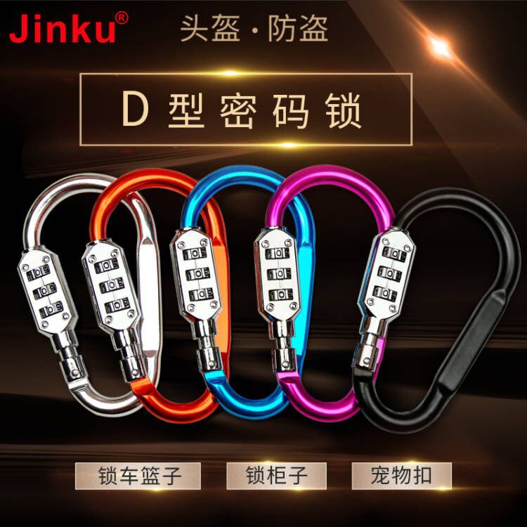 Gembok kunci kata sandi tipe D, ransel karabiner bagasi pengingat kunci tali bagasi kunci sepeda