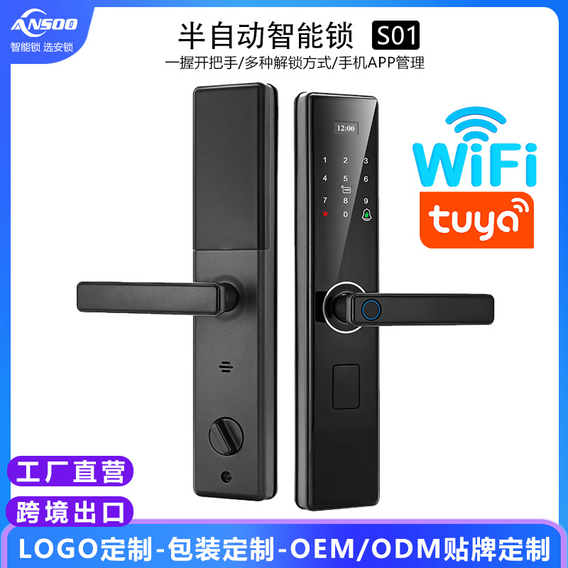 Grosir apartemen kata sandi ruang sidik jari kunci kata sandi aplikasi remote WIFI kunci elektronik semi-otomatis kunci pas pintar