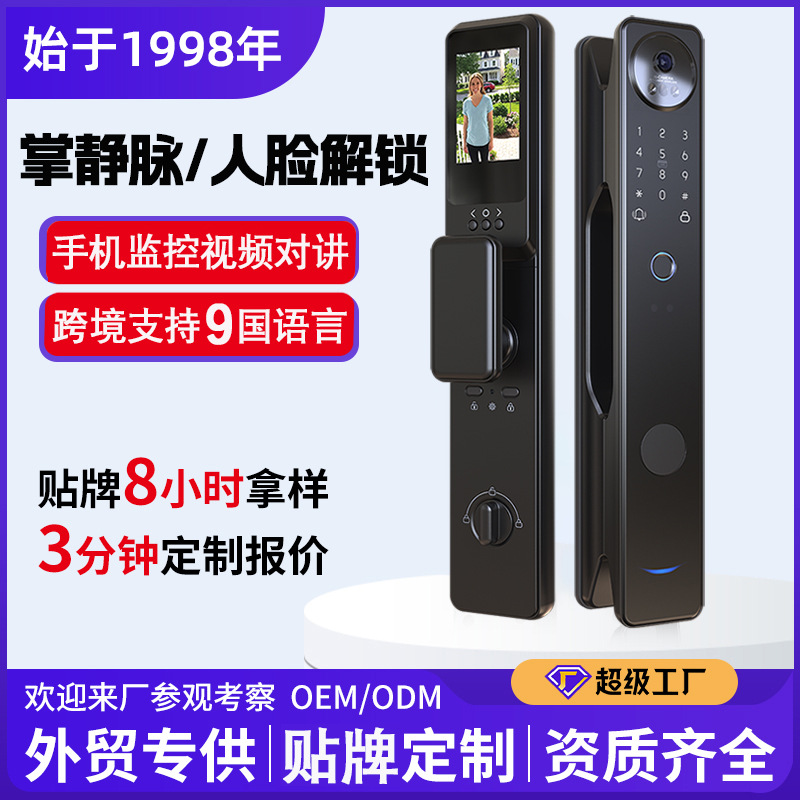 Kustom Kunci Sidik Jari Kunci Pintu Cerdas Kunci Sandi Elektronik Kunci Kunci Pintu Anti Pencuri Apartemen 3D Pengenal Wajah Kunci Cerdas