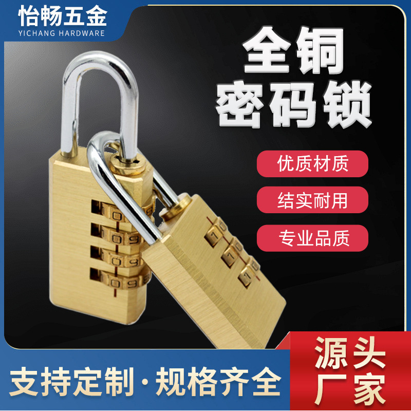 Kunci bagasi tembaga, gembok lemari penyimpanan kata sandi kuningan 4 roda