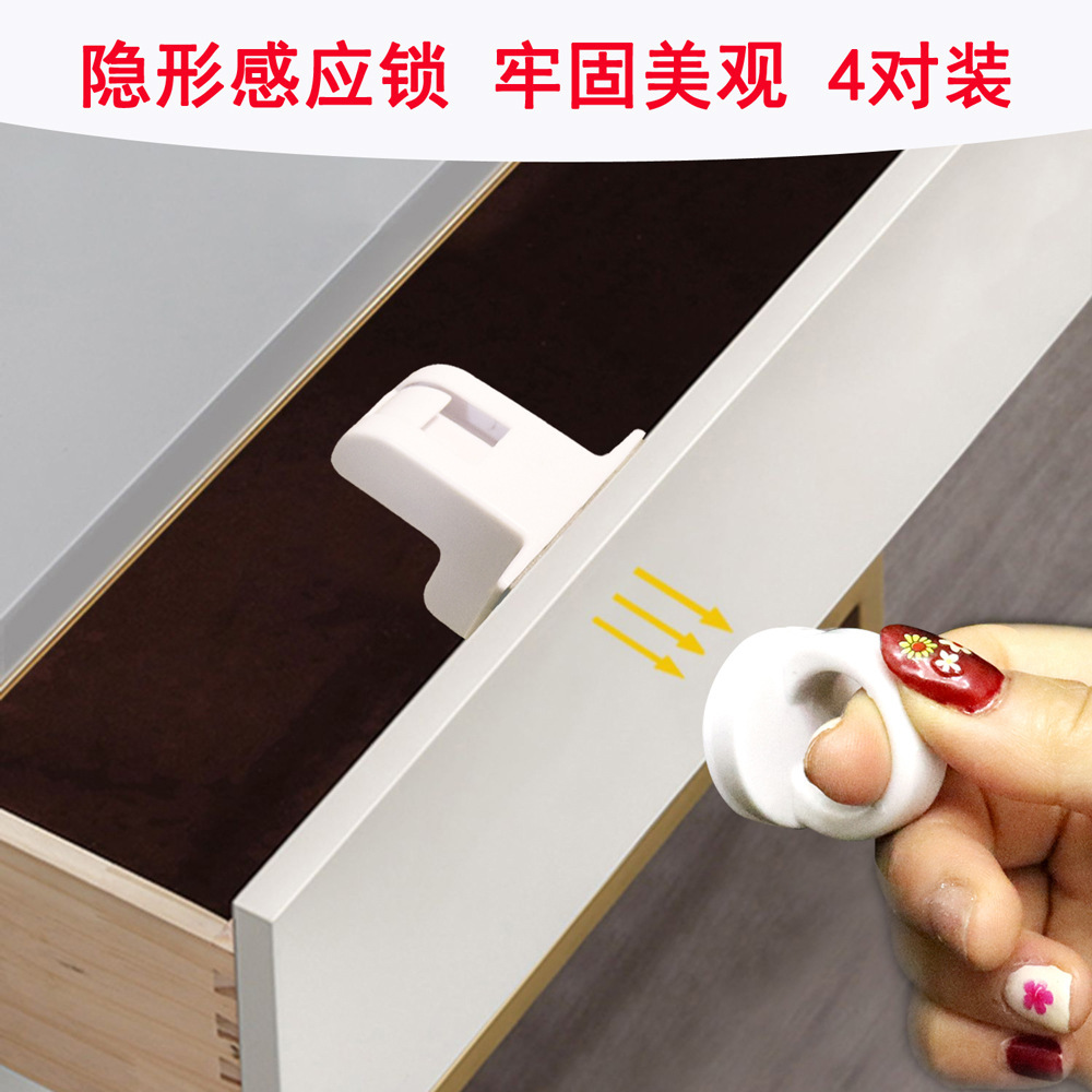 Kunci pintu lemari pegangan bayi, kunci magnetik tidak terlihat, kunci pintu laci anti Anak