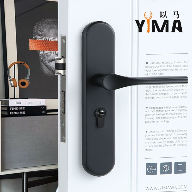 Kunci pintu kamar tidur rumah tangga paduan seng hitam grosir perangkat keras gagang pintu magnetik senyap