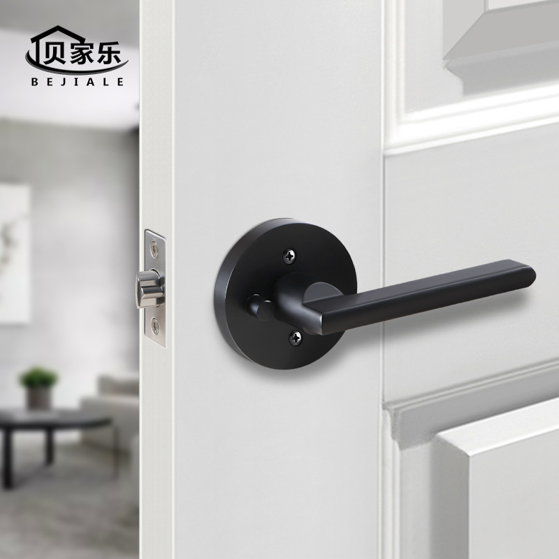 Kunci pintu dalam ruangan, kunci penghisap magnetik sederhana untuk pintu kamar tidur hitam Rumah Tangga gagang pintu kayu solid kunci terpisah grosir