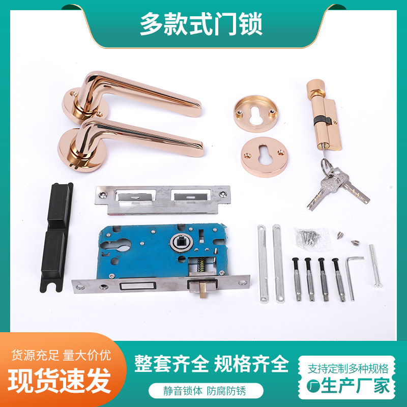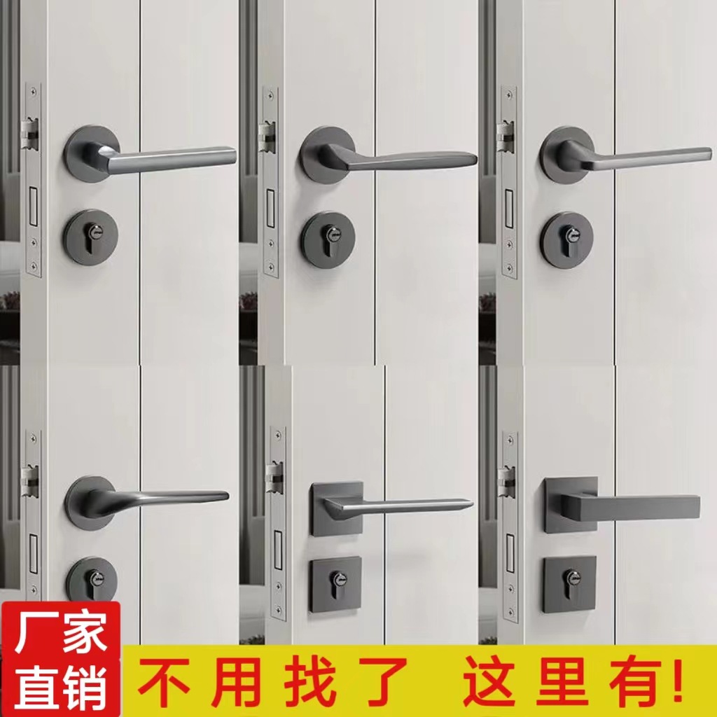 Kunci pintu dalam ruangan, untuk rumah tangga, tidak bersuara, kunci pintu kayu, kunci terpisah hitam, abu-abu, ringan, pegangan pintu sederhana