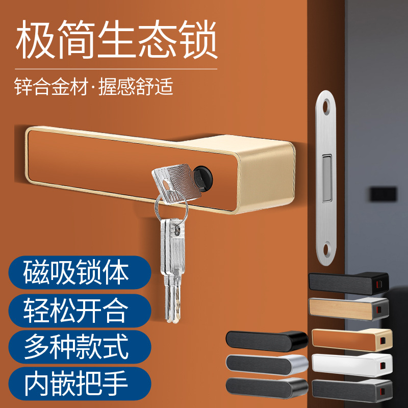 Kunci pintu Split sederhana magnetik, tidak bersuara, pegangan pintu rumah tangga universal sederhana, kunci pintu kayu solid