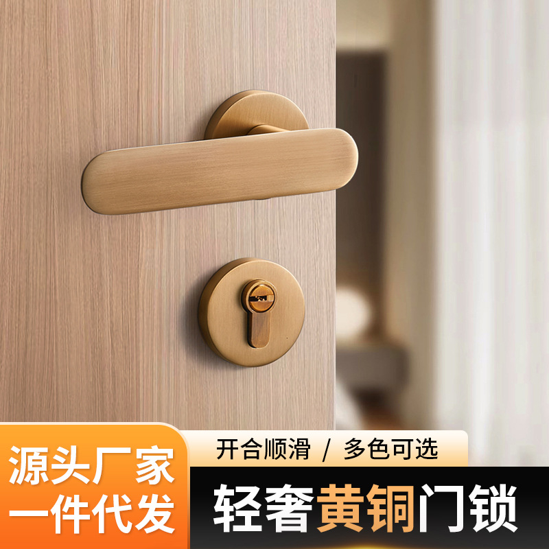 Kemewahan Ringan Kunci Pintu Kuningan Kunci Pintu Kamar Tidur Kunci Pintu Dalam Ruangan Sederhana Modern Kunci Tangan Kunci Pintu Diam Magnetik