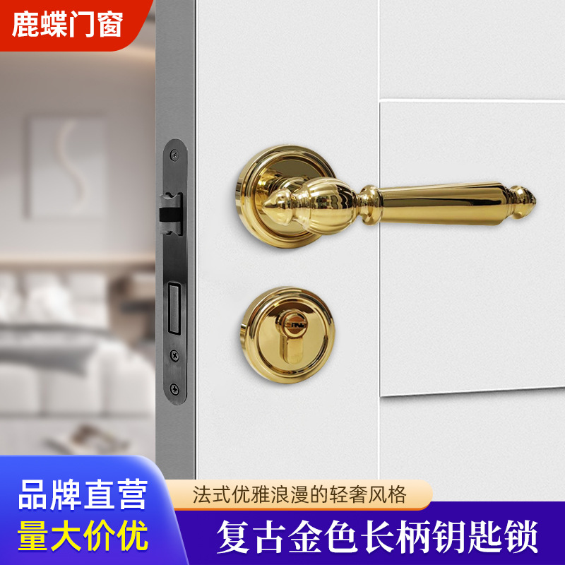 Pintu retro Perancis ringan mewah emas pegangan panjang aksesoris kunci kunci pintu mekanis inti kunci pabrik Foshan langsung