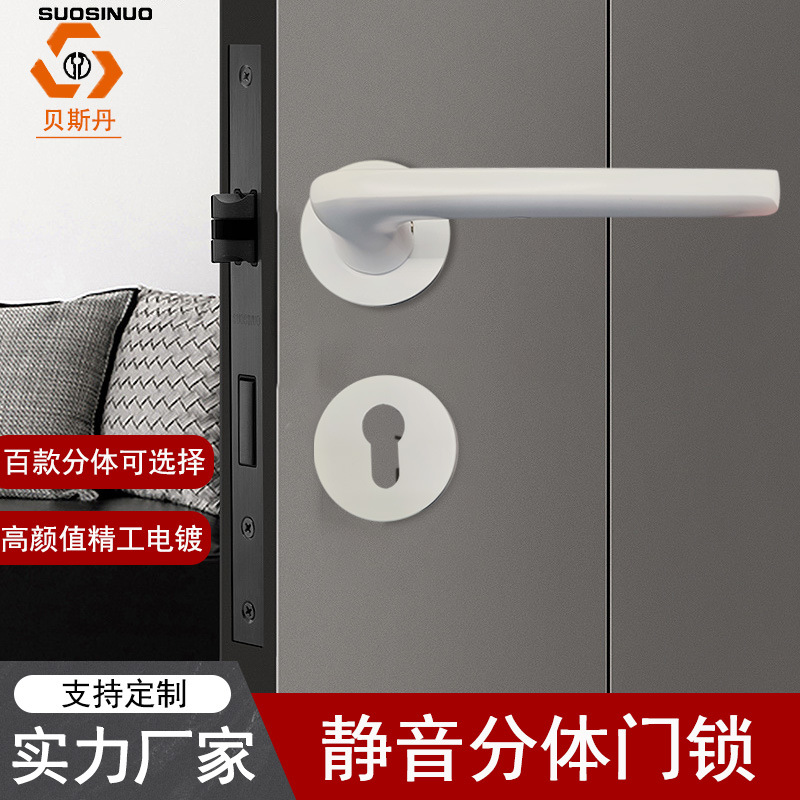 Kunci pintu minimalis Modern, kunci pintu dalam ruangan kamar tidur, kunci split putih, kunci pegangan bisu minimalis