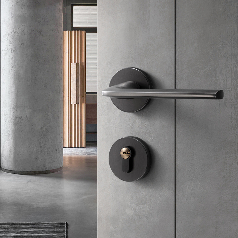 Kunci Pintu Magnetik Abu-abu Kunci Pintu Kamar Tidur Interior Kunci Pintu Kayu Kamar Kamar Sederhana Kunci Kunci Pembagi Diam Rumah Tangga Angin Lintas Batas