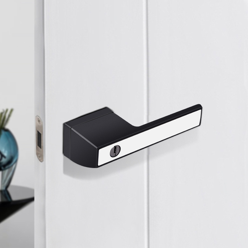 Kunci pintu pemisah bisu kamar tidur hitam eksterior pegangan mekanis modern paduan seng dalam ruangan kunci pintu kayu