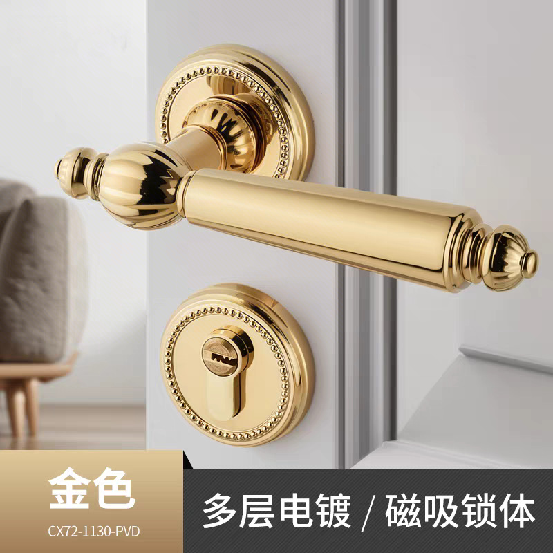 Kunci pintu magnetik modis rumah tangga, kunci pintu pemisah seng Aloi sunyi PVD emas kamar tidur kamar mandi