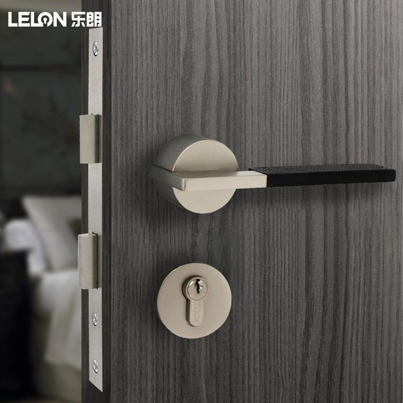 Lelang kunci mortise pegangan kulit asli mewah ringan grosir kunci pintu dalam ruangan gaya Nordik kunci pintu magnetik senyap kunci split penyedot