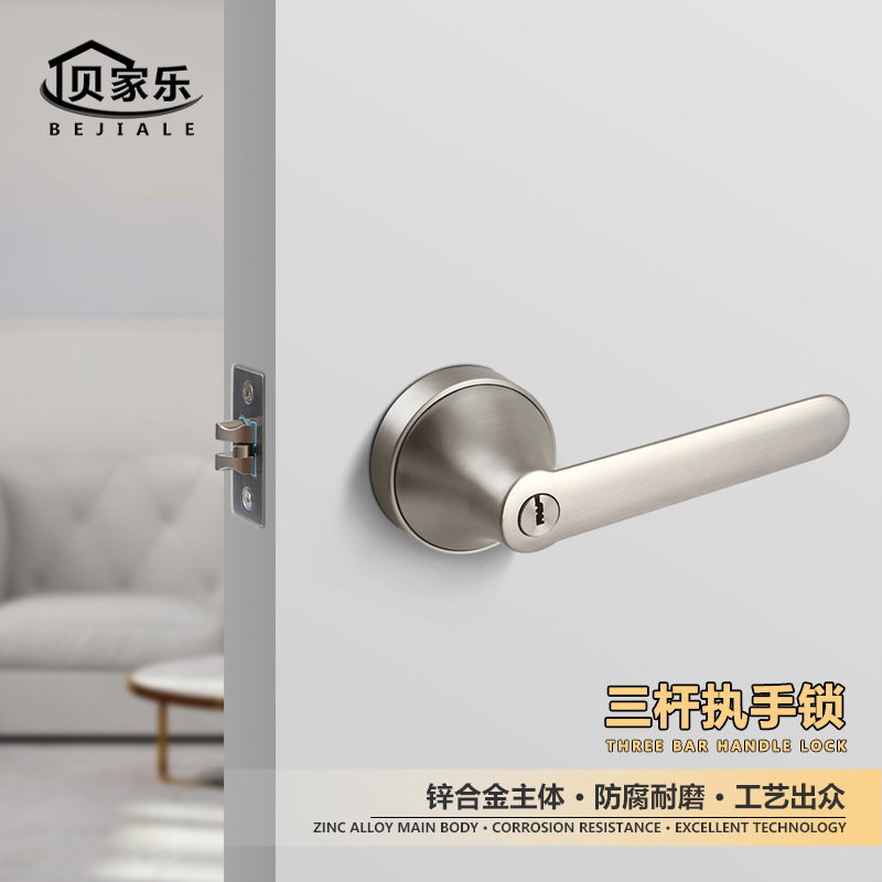 Kunci pintu kayu dalam ruangan, tiga tiang pegangan kunci pintu kamar tidur sederhana lidah tunggal kunci bisu rumah tangga kamar mandi kunci pintu paduan seng