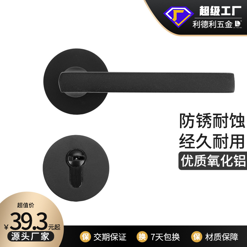 Lideli kunci pintu split hitam oksida aluminium kunci dalam ruangan bisu kunci kamar tidur kunci pintu kayu kunci kamar mandi