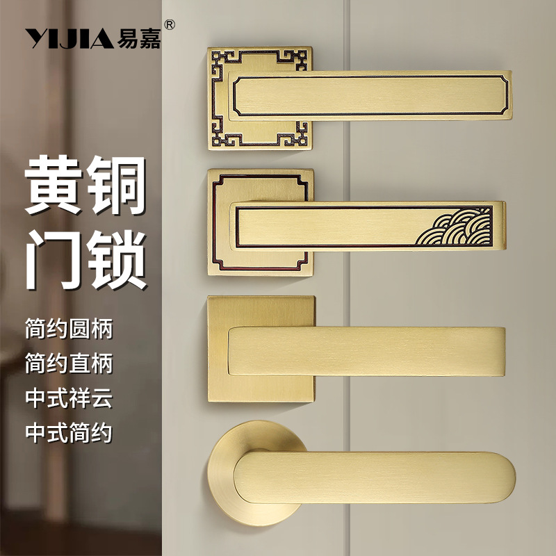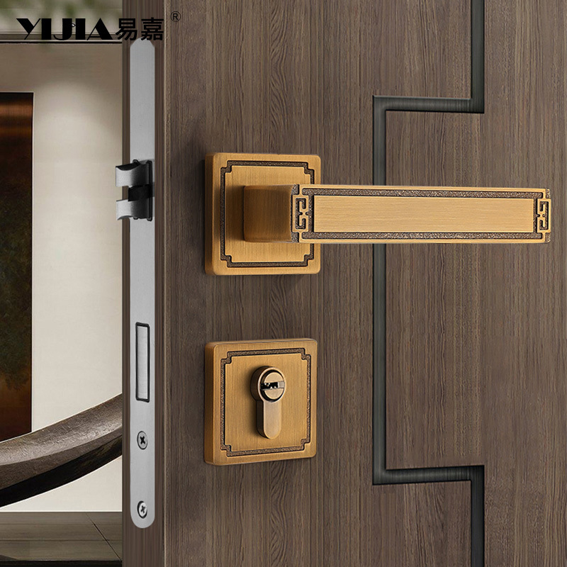 Kunci pintu kamar tidur China, kunci pintu kamar mandi dalam ruangan perunggu kuning, kunci terpisah, kunci bisu magnetik