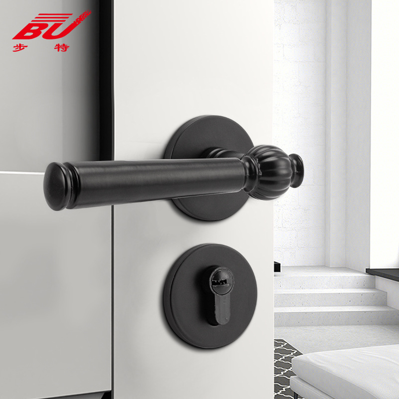 Kunci pintu kamar tidur hitam, gagang pintu dalam ruangan rumah tangga, tidak bersuara, kunci pintu kamar terpisah, kunci magnetik, kunci pintu kayu grosir