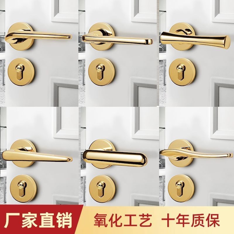 Kunci pintu kamar tidur, tutup magnetis dalam ruangan, emas terpisah, gagang pintu kamar universal Rumah Tangga