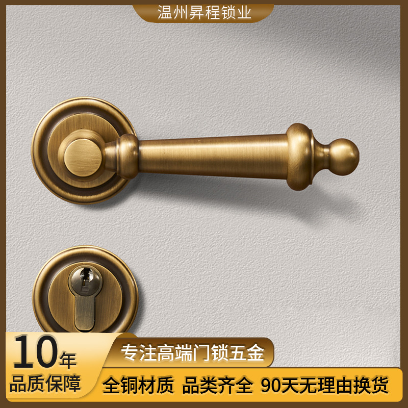 Kunci pintu kamar tidur kuningan tembaga murni, kunci magnetik dalam ruangan senyap Pintu Amerika retro kunci pegangan pintu kayu solid grosir