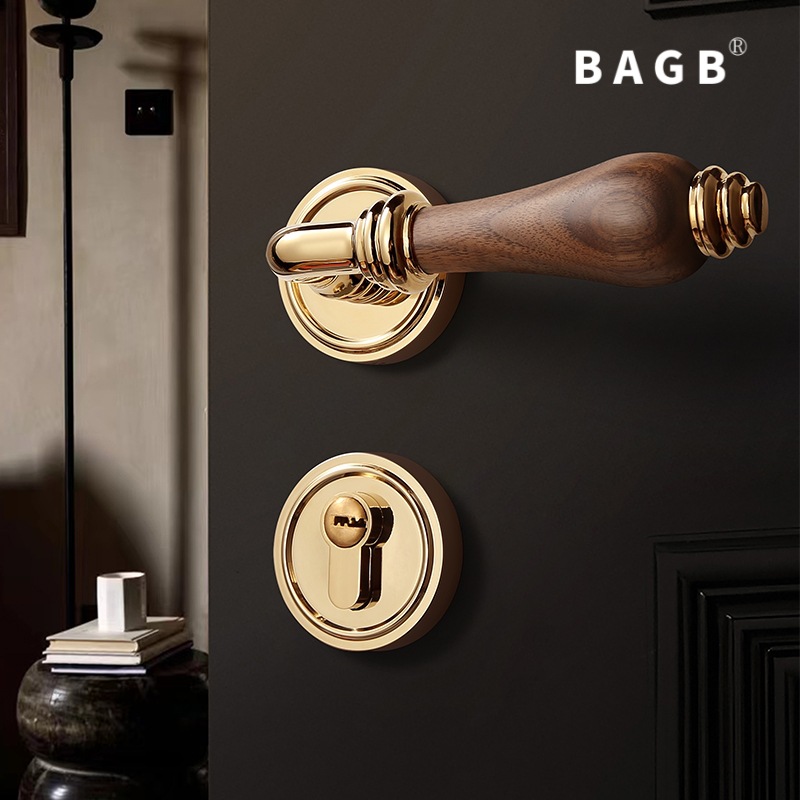 BAGB kunci pintu kamar tidur China, gagang pintu kayu solid dalam ruangan Prancis, magnetik terpisah, hisap, tidak bersuara, kunci pintu kamar tidur