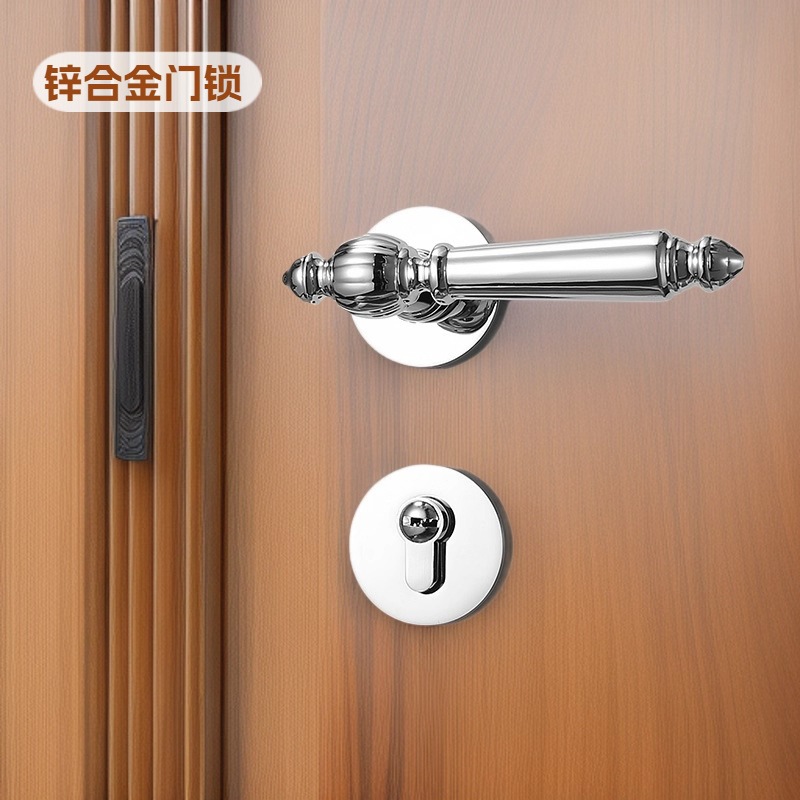 Kunci pintu kayu dalam ruangan, cahaya perak cerah mewah split Nordic setelan sederhana Amerika Perancis kamar tidur magnetik pegangan tidak bersuara
