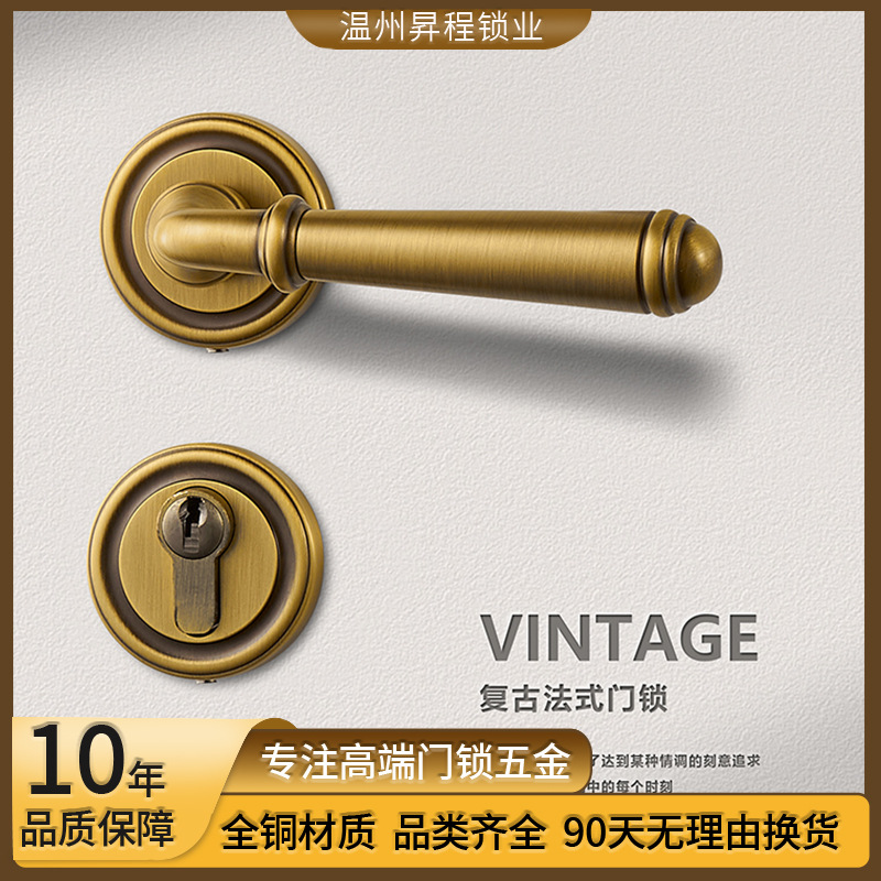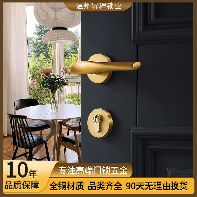 Kunci pintu tembaga emas, kunci pegangan pintu kayu padat interior kamar tidur senyap magnetik sederhana Prancis tembaga murni