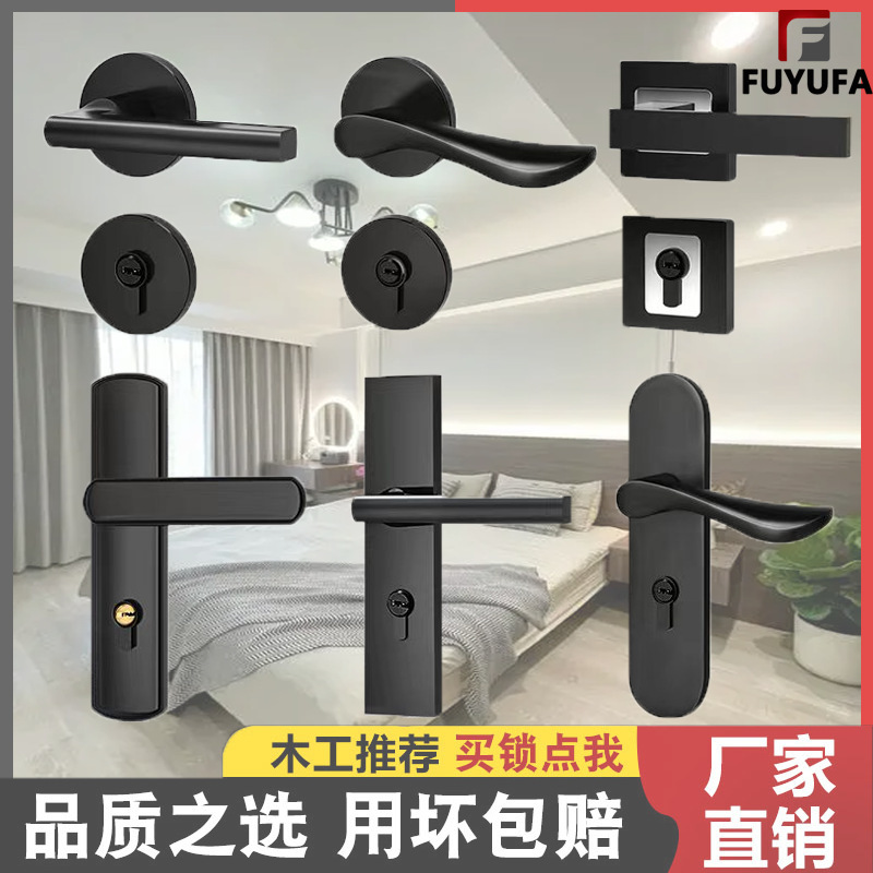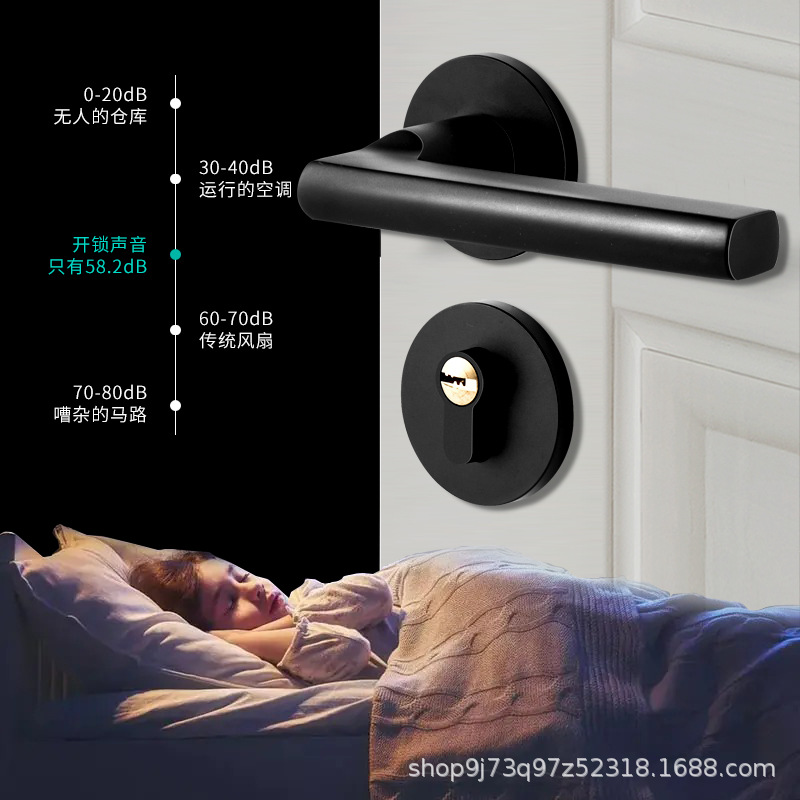 Kunci pintu kamar tidur hitam kunci pintu kayu padat senyap kunci pemisah aluminium oksida penyedot magnet kunci pegangan pintu rumah tangga grosir