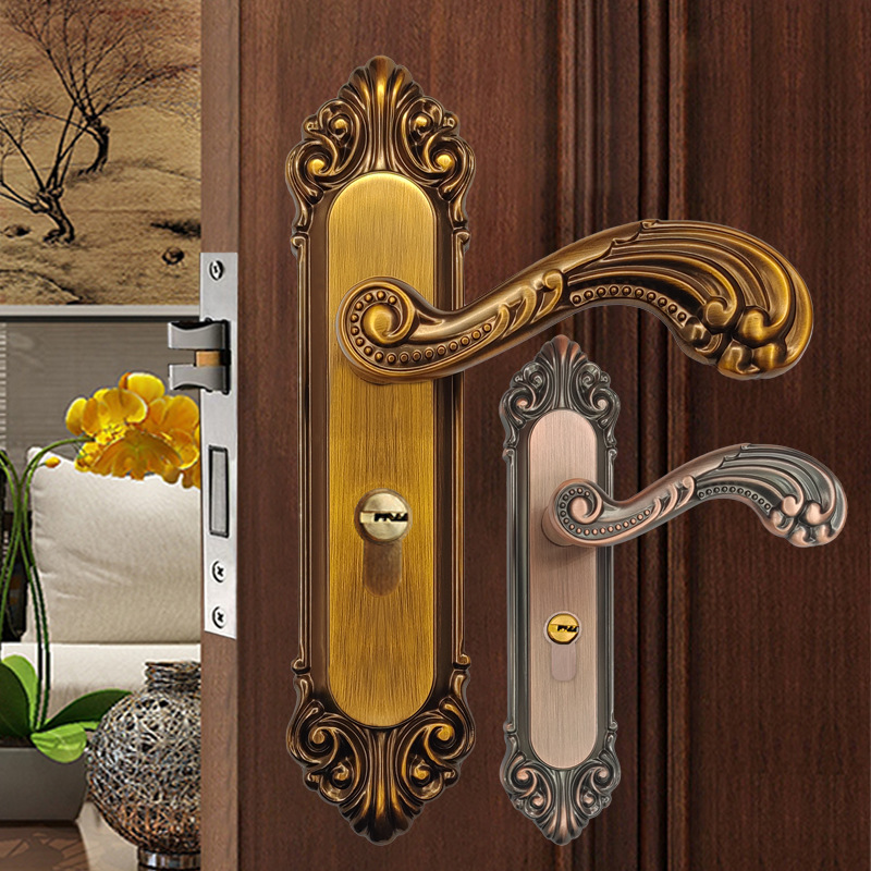 Kunci pintu bisu gaya Eropa, mahkota kunci magnetik kelas tinggi ruang kamar tidur gagang pintu kayu solid kunci pintu setelan perunggu kuning