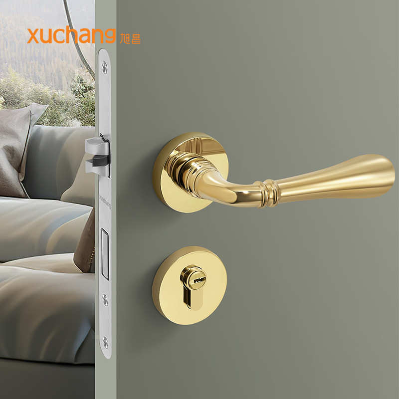 Kunci pintu Emas Prancis paduan seng, kunci pintu kayu dalam ruangan, kunci pintu kamar tidur, lampu isap magnetik, pegangan pintu mewah