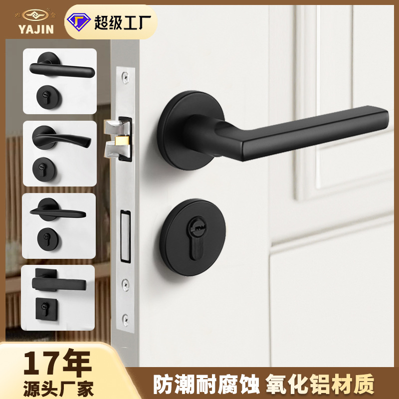 Yajin dalam ruangan kunci pintu rumah tangga senyap pintu kayu kamar mandi kunci split kamar tidur magnetik hitam Teknik pegangan pintu