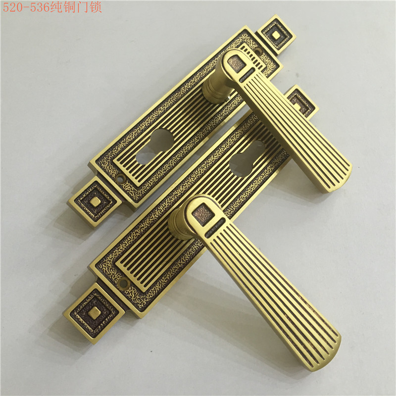 Kunci pintu Semua tembaga merek Cina, kunci pintu vintage kayu solid senyap kunci pintu tembaga murni mekanis semua tembaga pegangan pintu kamar mandi