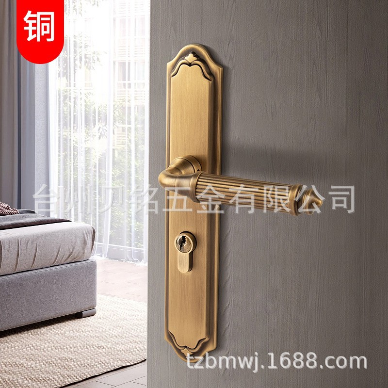Yongjiafu Gaya Eropa Kunci Pintu Kamar Tidur Pintu Kamar Tidur Pintu Kayu Solid Kunci Pintu Vintage Tembaga Villa Magnetik