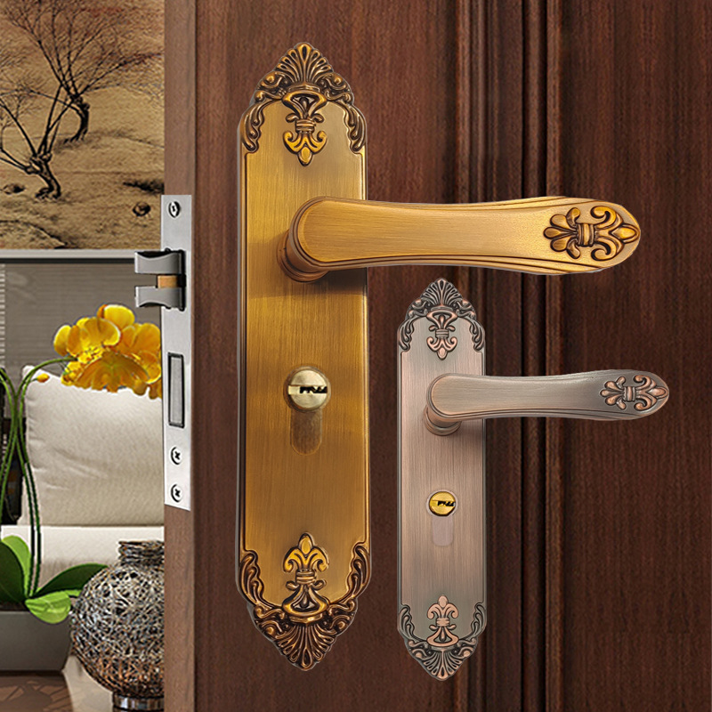 Kunci pintu universal rumah tangga, kunci pintu rumah tangga Retro Perancis kamar tidur dua potong magnetik cahaya senyap mewah gaya Eropa