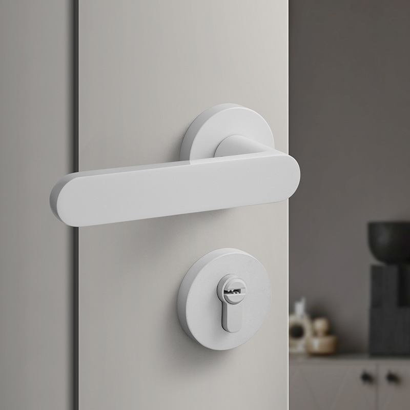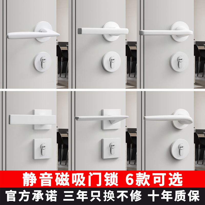 Kunci pintu kamar tidur, Modern sederhana krim putih senyap kunci pintu magnetik rumah tangga dalam ruangan kayu kunci pintu interior pegangan pintu
