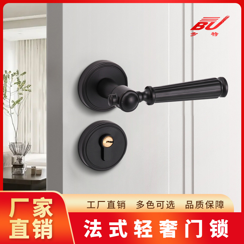 Kunci pintu kamar tidur hitam, gagang pintu dalam ruangan rumah tangga, tidak bersuara, kunci pintu kamar terpisah, kunci magnetik, kunci pintu kayu grosir
