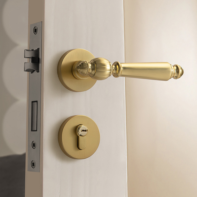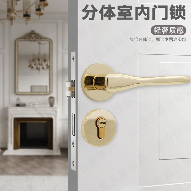 Kunci pintu kamar tidur kuningan, kunci magnetik senyap 72, badan emas, kunci pintu kamar mandi, kunci pegangan pisah