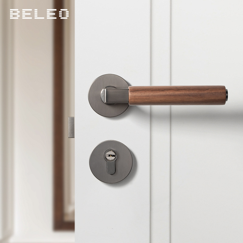 Kunci pintu hitam abu-abu, kunci pintu dalam ruangan kamar tidur, kunci pintu kayu, pegangan pintu terpisah, kunci magnetik tidak bersuara