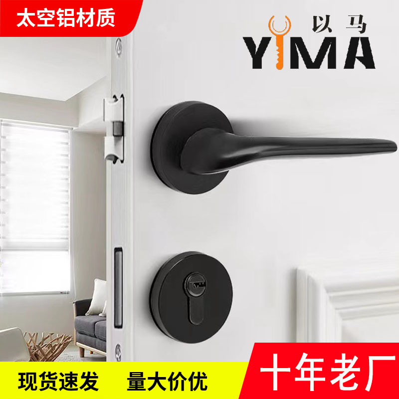 Yijia kunci pintu mekanis, kunci gagang terpisah dalam ruangan kamar tidur kamar mandi hitam Amerika modern bisu