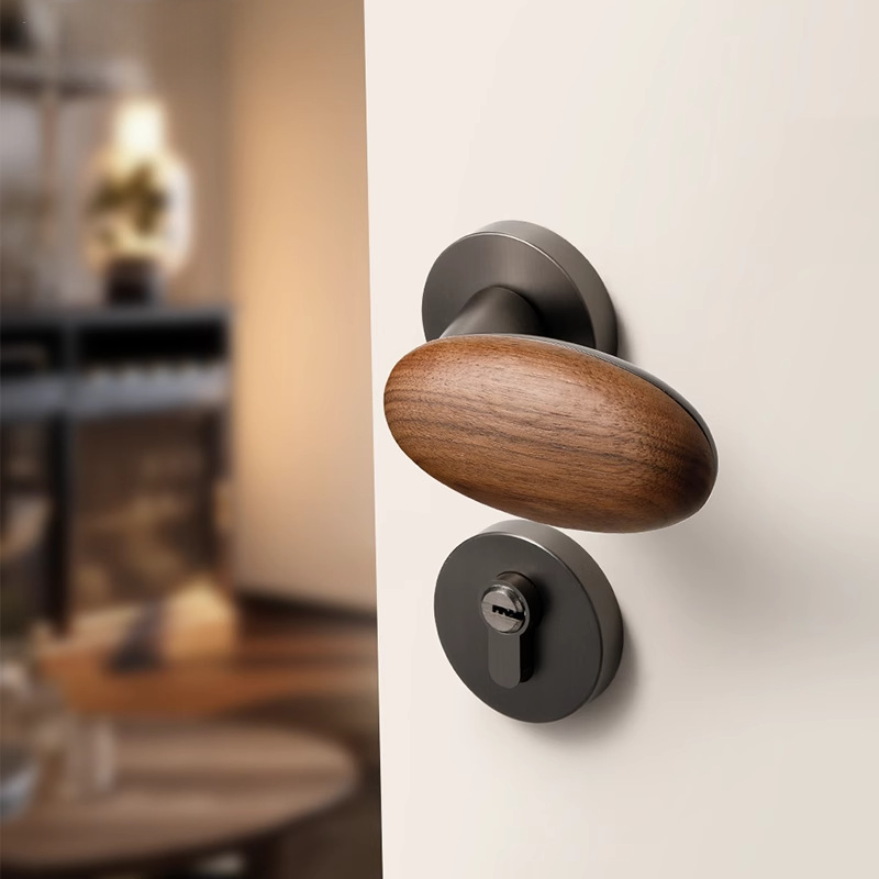 Kunci Pintu Kamar Tidur Pegangan Pintu Kayu Walnut Gaya Tiongkok Baru Penghisap Magnetik Dalam Ruangan